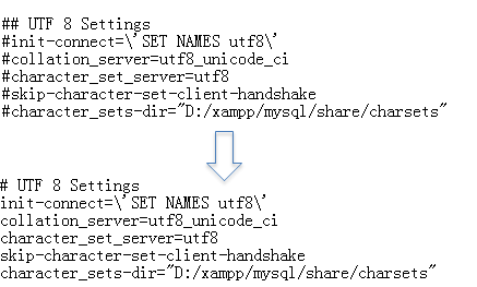 把my.ini中的字符集改为utf8,原文档中已有,但需要取消注释(如果不配置utf8,取出的中文是乱码)