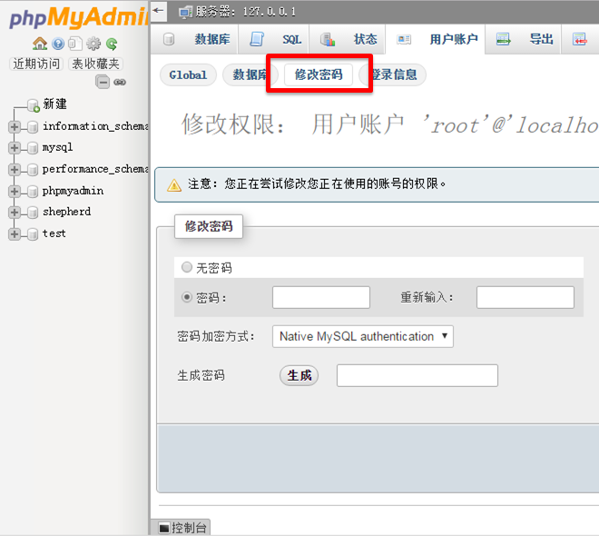 按照默认的安装结果,MySQL没有密码,需要设置密码,可以在xampp中启动apache和mysql后,为mysql设置密码。