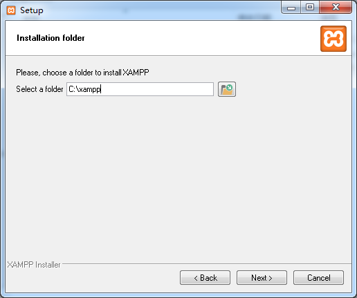 2.在选择安装目录时,默认是C:\xampp,我一般改为D:\xampp,曾经试图改为D:\ProgramFiles\xampp,但总是报错缺少Visual C++ 2008,改回D:\xampp就没有问题。
