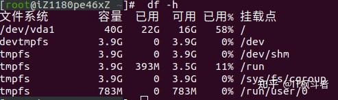 检查一台服务器磁盘使用空间,发现磁盘已经使用了100%(这是我解决之后截的图,已经恢复正常,剩余42%足够了)