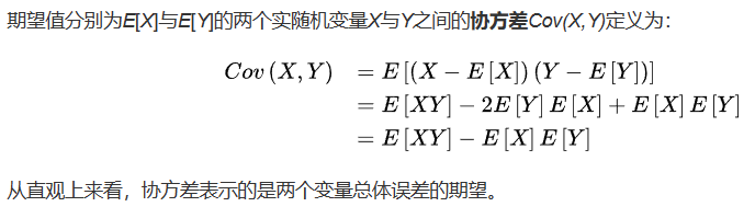 来度量各个维度偏离其均值的程度,协方差(covariance)可以这么来定义: